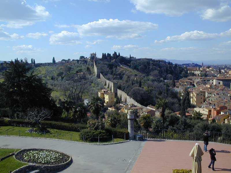 広場は丘の上にあり、中央にはミケランジェロのダビデ像が飾ってあった(もちろん模造)。